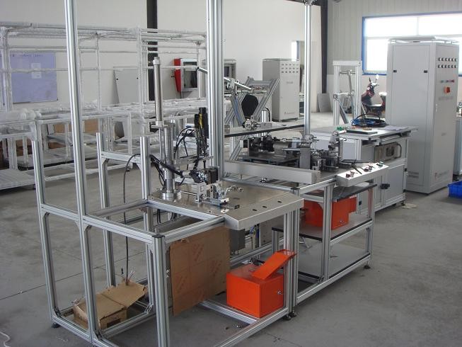 装配线由铝型材架体、操作台面、供料架体和装配专机等组成。各工位台体部分均独立设计。工位与工位之间的信号采集相互关联,统一对生产线进行管理。同时生产线设置一个总的电子看板,适时显示当日的时间,计划产量和已完成量等现场管理信息。