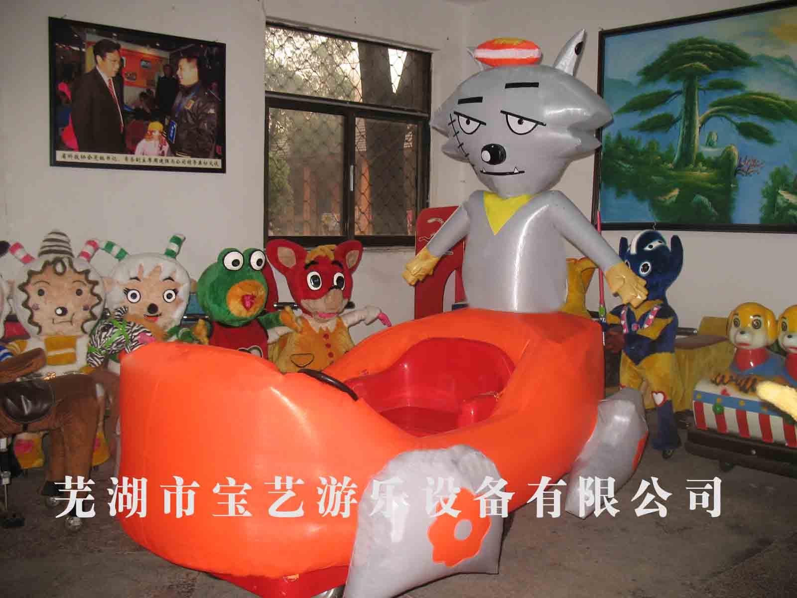 我公司生产的充气电瓶车分为大、小两种型号,外壳采用玻璃钢材质制成;小型充气电瓶车使用12V直流减速电机,大型充气电瓶车使用24V直流减速电机,并设有快慢档、倒车(配有倒车提示音)刹车、喇叭等功能;配置宝川牌智能控制器,可计时、调速、音乐、数字显示等功能;轮胎为高效耐磨型充气轮胎;内部为标准钢架结构;外套采用PVC加厚牛津亮光布料制成,具有耐磨、鲜艳、美观、易清洗、不褪色等特点;并配有双鼓风机。