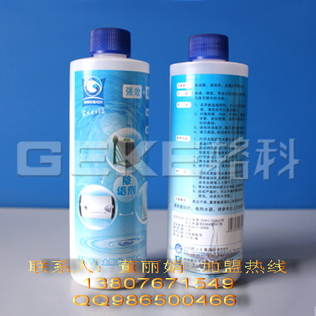 主要成份:食品酸、增效剂、金属材料保护剂 功能:快速、彻底、清洁太阳能热水器内壁与真空管内的水垢。