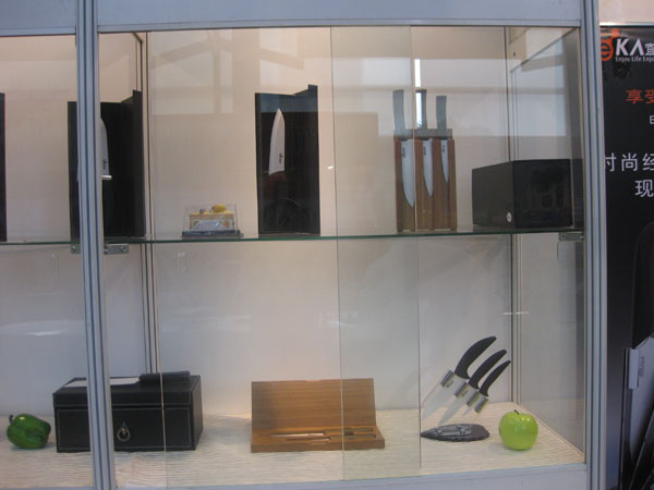 在超市买一把普通金属厨房用刀与一把EKA怡家精密怡家陶瓷刀做比较。