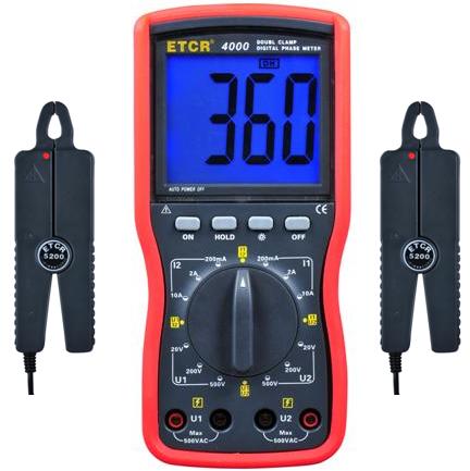 ETCR4000系列数字相位伏安表可以现场测量任意两相电压之间(U-U)、任意两相电流之间(I-I)、及任意相电压与电流之间(U-I)的相位,还可判别感性、容性电路,三相电压的相序,检测变压器的接线组别,测试二次回路和母差保护系统,读出差动保护各组CT之间的相位关系,检查电度表的接线正确与否等。