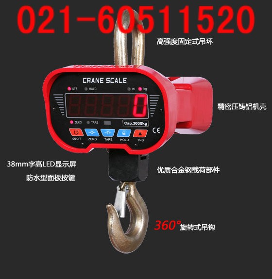 2,电子吊钩秤上海地区免费送货上门,安装调试。