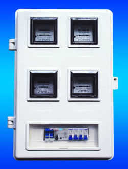 可直接固定在墙上或电线杆上,适应装配任何规格的机械表或电子表,能安装漏电开关DZ47或RCL熔断器以及隔离开关。电表与开关单独分开,用户能控制开关,线路不能外裸,具有防窃功能。