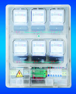 采用进口阻燃碳酸脂注塑成型,具有绝缘,耐高温,耐老化,抗冲击,防腐,防潮防水,安全可靠,透明清晰。表箱与开关箱的功能为一体,箱体内可装配各种型号机械表,电子表,熔断器,断路开关,进出接线端子,空气开关等元件。供电部门根据不同用户的需要,组合成具有多种不同功能的一个完整配电终端或计量装置。可开IC卡窗口口。用户经国家质量检测技术性能达到GB17466-1997标准,通过国家3C强制认证和ISO:9001质量管理体系认证,能够满足各种地供电部门的技术要求。