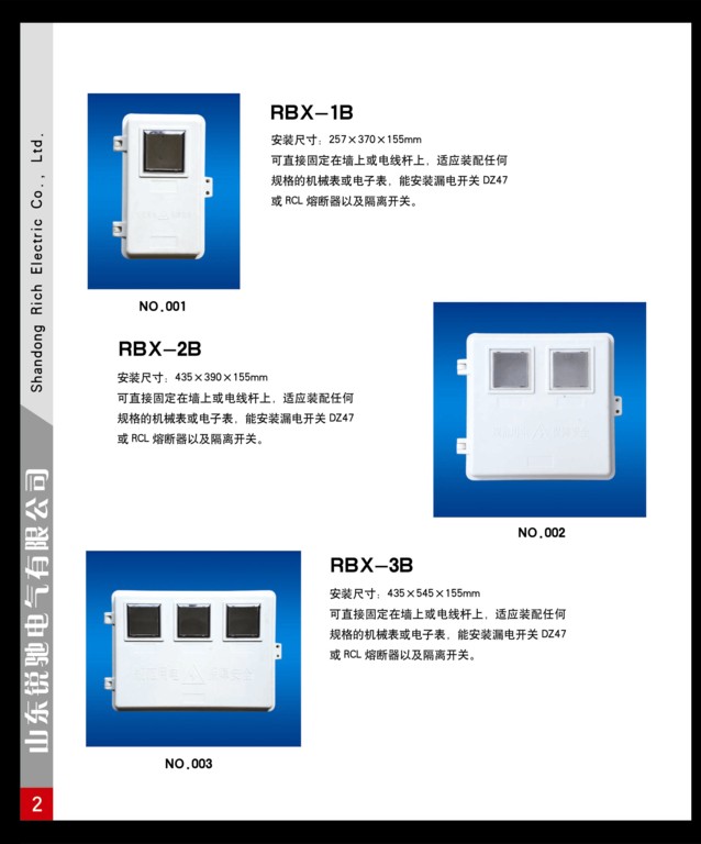 直接固定墙上或电线杆上,适应装配任何规格的单相机械式、电子式电表,安装接线端子、漏电开关DZ47或RT18熔断器以及隔离开关。电表与开关单独分开,用户能控制开关,线路不能外裸,具有防窃功能。