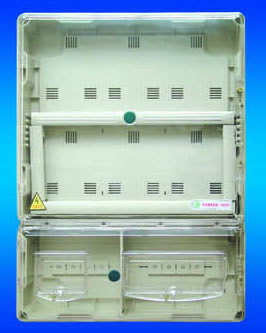 采用进口阻燃碳酸脂注塑成型,具有绝缘,耐高温,耐老化,抗冲击,防腐,防潮防水,安全可靠,透明清晰。表箱与开关箱的功能为一体,箱体内可装配各种型号机械表,电子表,熔断器,断路开关,进出接线端子,空气开关等元件。供电部门根据不同用户的需要,组合成具有多种不同功能的一个完整配电终端或计量装置。可开IC卡窗口口。用户经国家质量检测技术性能达到GB17466-1997标准,通过国家3C强制认证和ISO:9001质量管理体系认证,能够满足各种地供电部门的技术要求。