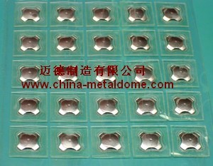 单Key金属弹片导电膜/锅仔片导电膜就是只有一个弹片的导电膜, 这种类型的导电膜一般国外需求的比较多,我们制作的跟美国的Snaptron公司的“Standard Peel-N-Place Sheet”是一样的。