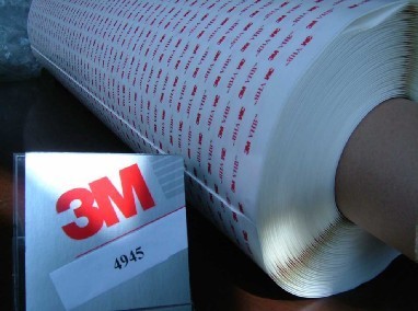3M 4945#丙烯酸双面胶带,它的厚度是1.1毫米,白色闭孔丙烯酸基材,抗增塑剂,有离型纸,耐高温,粘性高,