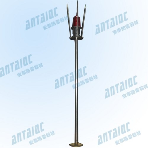 航灯式避雷针是一条无感性,低阻抗的金属内导体引下线,把接闪后的雷电电流输送到大地,并使被保护的天线铁塔或建筑物不发生侧击和带电,.航灯式避雷针材料为不锈钢,针高(2.5、3.5、4.5、6)M,中间是一个航标灯,夜间可给空中飞行物起警示作用,也可按客户需求专业订制。