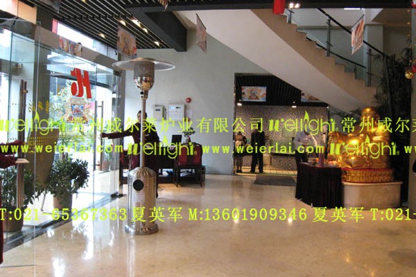 产品特点:1)外观优雅,伞型设计,巴洛克风格,做工精良.2)热效率高,红外线辐射散温,发热量相当于1台5匹空调,使用成本低,因为燃气的热值比电高,所以比空调每小时的使用成本节约40%,升温迅速1到3分钟左右.供暖面积30-150M23)使用环境灵活,可以随意移动,酒店大堂,餐馆,酒吧,户外花园,岗亭,各类展会活动现场等各类休闲场所。4)安全性高,本身设计装有熄火保护,倾倒保护,缺氧保护,让您使用无后顾之忧,更安心更省心更放心。5)无污染,绿色环保。