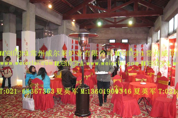 产品特点:1)外观优雅,伞型设计,巴洛克风格,做工精良.2)热效率高,红外线辐射散温,发热量相当于1台5匹空调,使用成本低,因为燃气的热值比电高,所以比空调每小时的使用成本节约40%,升温迅速1到3分钟左右.供暖面积30-150M23)使用环境灵活,可以随意移动,酒店大堂,餐馆,酒吧,户外花园,岗亭,各类展会活动现场等各类休闲场所。4)安全性高,本身设计装有熄火保护,倾倒保护,缺氧保护,让您使用无后顾之忧,更安心更省心更放心。5)无污染,绿色环保。
