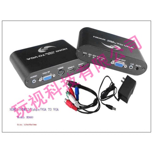 1.将高清晰度HDMI,YPBPR信号通过数字化转换芯片,无损转变为标准VGA输出模式