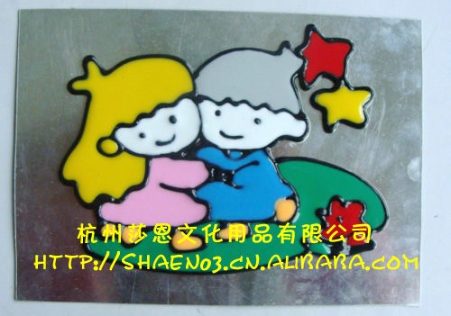 彩绘贴画,又称胶画或烤画,是一种的深受少儿喜爱的手工制作产品。将彩色颜料填入带有边框的图案中,经低温加热,就可得到制作成品,整个制作过程不超过30分钟即可完成,它能任意张贴在光滑物表面,丰富孩子们的个性空间。