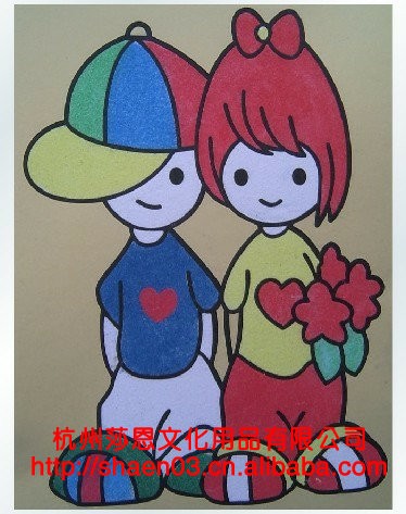 砂画是较早出现的一种儿童手工玩具,用彩色砂子在不干胶底卡上绘制图案的手工产品,操作简单,适合青少年群体。在色彩搭配间充满无限乐趣,是亲子互动的好产品。杭州莎恩文化用品有限公司位于浙江省杭州市拱墅区,主营美术颜料和DIY产品等。公司秉承“顾客至上,锐意进取”的经营理念,坚持“客户第一”的原则为广大客户提供优质的服务。欢迎惠顾!有需要可加我QQ:674430847 杭州莎恩小何电话:0571-88133305/13588431374 何小姐公司网站:www.snpaint.com