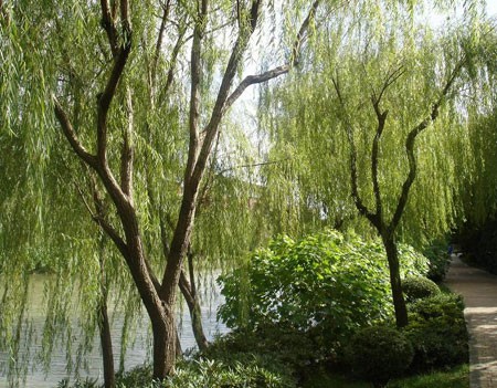 柳树的又可以叫做水柳、垂杨柳、清明柳。柳树的特性:落叶大乔木,柳枝细长,柔软下垂,性喜湿地,高可达20-30公尺,径50-60公分,生长迅速;树皮组织厚,纵裂,老龄树干中心多朽腐而中空。枝条无毛;冬芽线形,密着于枝条。柳树叶互生,线状披针形,长7-15公分,宽6-12毫米,两端尖削,边缘具有腺状小锯齿,表面浓绿色,背面为绿灰白色,两面均平滑无毛,具有托叶。柳树花开于叶后,雄花序为葇荑花序,有短梗,略弯曲,长1-1.5公分。柳树有毒部位:叶子及树皮。柳树中毒症状:误食后引起冒汗、口渴、呕吐、血管扩张、耳鸣、视觉模糊,严重时呼吸困难、昏睡终日、丧失知觉、呼吸深而慢、脉搏则变快等症状。