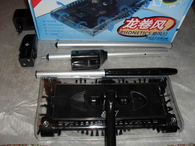 旋风扫地机器1个、 7.2伏充电电池1个、电池1300毫安、电池充电器1个、三节延长杠、包装彩盒,中、英文说明书2份。