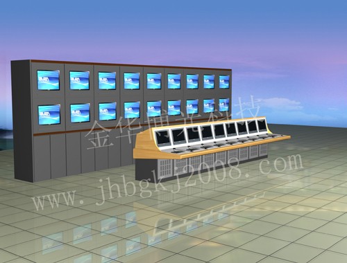 {控制台}结构:钢木组合拼装,安装方便快捷,外形美观实用。下部设计有标准19英寸机柜,可满足各种设备的安装!