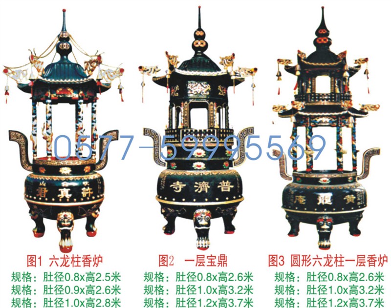 香炉说明:材料分铜、铁两种,规格大小齐全,均可订做,按重量计价,以当下材料价格为准。品名有圆形平口、长方形平口、圆形六龙柱、长方形四龙柱、长方形八龙柱、长方形双层八龙柱、香炉鼎、纸炉、焚经炉。炉面所铸图案文字订方可自行提供,我厂免费为您设计,按要求铸造。更多产品请登陆:http://www.xindagongyi.com