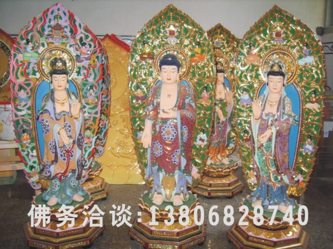 供应玻璃钢佛像,木雕佛像,西方三圣(铜像)