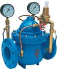 当阀门从进口端给水时,水流过针阀进入主阀控制室,出口压力通过导管作用到导阀上。当出口压力高于导阀弹簧设定值时,导阀关闭。控制室停止排水,此时主阀控制室内压力升高并关闭主阀,出口压力不再升高。