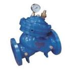 水力控制阀就是水压控制的阀门,它由一个主阀及其附设的导管﹑导阀﹑针阀﹑球阀和压力表等组成。根据使用目的﹑功能及场所的不同可演变成遥控浮球阀﹑减压阀﹑缓闭止回阀﹑流量控制阀﹑泄压阀﹑水力电动控制阀等。水力控制阀分隔膜型和活塞型两类,工作原理相同,都是以上下游压力差△P为动力,由导阀控制,使隔膜(活塞)液压式差动操作,完全由水力自动调节,从而使主阀阀盘完全开启或完全关闭或处于调节状态。当进入隔膜(活塞)上方控制室内的压力水被排到大气或下游低压区时,作用在阀盘底部和隔膜下方的压力值就大于上方的压力值,所以将主阀阀盘推到完全开启的位置;当进入隔膜(活塞)上方控制室内的压力水不能排到大气或下游低压区时,作用在隔膜(活塞)上方的压力值就大于下方的压力值,所以就会把主阀阀盘压到完全关闭的位置;当隔膜(活塞)上方控制室内的压力值处于入口压力与出口压力中间时,主阀阀盘就处于调节状态,其调节位置取决于导管系统中的针阀和可调导阀的联合控制作用。可调导阀可以通过下游的出口压力并随它的变化而开大或关小其自身的小阀口,从而改变隔膜(活塞)上方控制室的压力值,控制方阀阀盘的调节位置。