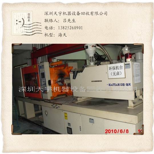 深圳天宇机器设备回收有限公司主要回收注塑机系列:住友,日钢,日精,东芝,东洋,新泻,宇部,川口,法那科,三菱,阿博格,雅宝,巴登菲尔德,德马格,奥地利,辛辛那提,LG,东信,明基,桦钦,超群,南荣,舜展,华展,义展,群基,精机,瑞丰,综伟,联有,联塑,联镇,全力发,富强鑫,台中精机,震德,震雄,海天,海达,海曙,天鼎,伊芝密,亿利达,达明,泓利,泰瑞,华大,华科,力劲,佳明,华达,恒生,博创,格兰,翔工,爱国者,大地城,东华等品牌注塑机。