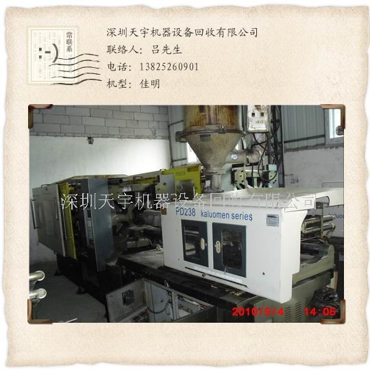 深圳天宇机器设备回收有限公司主要回收注塑机系列:住友,日钢,日精,东芝,东洋,新泻,宇部,川口,法那科,三菱,阿博格,雅宝,巴登菲尔德,德马格,奥地利,辛辛那提,LG,东信,明基,桦钦,超群,南荣,舜展,华展,义展,群基,精机,瑞丰,综伟,联有,联塑,联镇,全力发,富强鑫,台中精机,震德,震雄,海天,海达,海曙,天鼎,伊芝密,亿利达,达明,泓利,泰瑞,华大,华科,力劲,佳明,华达,恒生,博创,格兰,翔工,爱国者,大地城,东华等品牌注塑机。