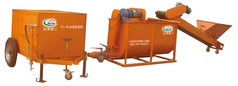 KT-30型水泥发泡机是我公司采用多项技术,根据我国新兴发泡水泥保温施工而设计的专用设备。由发泡、搅拌、泵送、上料、控制系统等五大部分组成,它采用了最新软管泵调频泵送技术,克服了螺杆泵、柱塞泵运动部件易损,维修费用高、工程质量不稳的弊端。是国内拥有此项技术的厂家之一。适用于地暖、屋面等诸方面的发泡水泥工程。
