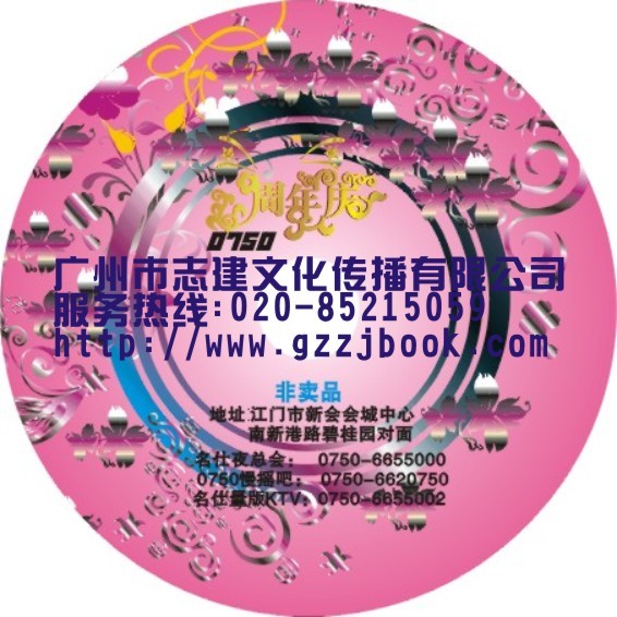广州志建光盘科技有限公司是一家专业从事影视制作、光盘生产制作与多媒体光盘内容设计相结合的高科技企业。专业生产制作CD/VCD/CD-ROM/DVD/DVD-ROM名片光盘/小圆盘/异型光盘/黑胶光盘等。从光盘丝印、胶印、数码打印、刻录、复制,从小批量到大批量压盘制作,从光盘封面设计、外包装设计到多媒体光盘内容设计制作,为客户提供一条龙的光盘设计、制作服务。