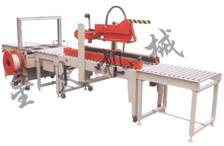 河南自动封箱打包机-纸箱打包机由FXJ-5050L自动封箱机、KZA-8060全自动捆扎机和输送架组成,具有连续自动封箱及多道捆扎包装的功能,既减少占地面积,又降低包装成本。采用德国西门子公司LOGO!进行自动控制,工作可靠。操作方便,保养简单。封箱、捆扎机也可分别单独使用。