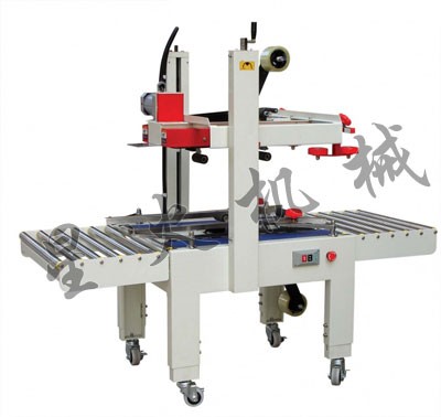 FXJ6050A胶带封箱机主要适用于纸箱的封箱包装,即可单机作业,也可与流水线配套使用。封箱机采用即贴胶带封纸箱封口,经济快速、容易调整,可一次完成上、下封箱动作,