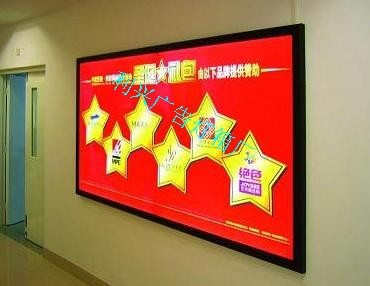 采用导光板所形成的背光模组,组合多种多样的外框材料而制成的一种多功能的新的广告载体,集超薄、时尚、节能、光照度均匀舒适、安装维护简便等优点于一身,适用于任何商业区域。形状有单面牌、双面牌、弧形牌和指示牌等。