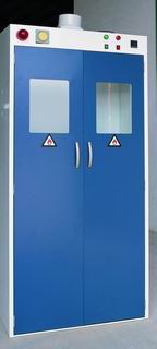 2、气瓶安装:将同类气瓶装入固定架上,检查无误后,将固定带琐紧。(以气瓶不摇动为益)并将相应的气压表牢固的接在气瓶上,将气线从气线孔引出。当气路检查无误后,打开气阀,调整到相应的压力值。