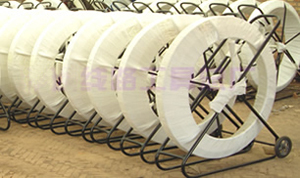 第三代玻璃钢穿线器,是本公司2009年1月研制成功的最新产品,该产品引进德国生产技术,结合实际施工经验与施工中常见问题生产出的换代产品,(产品部分材质非国内生产,本公司现以开发成功。)该产品的牵引强度,柔韧度,抗老化程度,耐温程度,抗酸碱程度都大大超过1代2代产品,电缆穿线器牵引头部采用特殊材质,使用更方便,使用寿命更长。