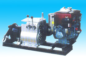 一、产品名称:机动绞磨 二、产品型号:3T、5T、8T 三、用途:机动绞磨机是架设空中高压输电线路及铺设地下电缆的施工工具,能在各种复杂条件下顺利、方便的进行组立革塔、架设导(地)线等起重牵引。经实验和现场实际作用证明,具有结构合理、体积小、重量轻、功率大、操作灵活、搬运方便等优点,深受广大电力作业者的欢迎! 四、规格: 输出正转:最慢线速度12转/分,最快速度22转/分 输出反转:11转/分,20转/分 五、结构与工作原理 1、动力 3T柴油 功率:4马力 转速:2600转/分 5T柴油 功率:8马力 转速:2600转/分 2、传动方式及变速: 动力与变速齿轮箱3T,A型三角皮带两根,5T两根B型三角皮带传动,并装有传动离合器。 3、制动 有自动夹刹及离合传动连锁刹两种制动装置,在正、反方向均起制动作用。 4、手摇装置: 绞磨机在工作过程中,若遇原发动机发生故障,被吊物在不上不下的情况下,可拨动手摇装置,将被吊物继续吊起或放回地面。 5、润滑方法 变速齿轮箱内各机件渗润外轴承用黄油。 (1)开机前,必须先打开绞磨机传动离合器,并把前后变档杆拨至空挡位置,然后才能开机。 (2)拨动离合器时,动作应快捷,否则连锁刹车不起作用,形成增加自动刹车棘爪之冲击力。在开机时不宜过于用力,至皮带轮能带动输入轴转动不致走滑即可。 (3)变档时必须打开传动离合器,否则会损坏齿轮,变档后应检查变挡是否牢合,以防发生跳挡现象。 (4)变挡过程中,若出现入挡困难现象时,不能强行入挡,可使用手摇装置帮助入挡具体做法:用扳手拨动手摇装置,使其旋转一角度,即可入挡。 5、装设钢丝绳方法: (1)将卷筒离合器打开,把钢丝绳头穿绕在卷筒上收紧,在合上离合器即可。 (2)将卷筒外测一端轴承支撑活动座拆开,把钢丝绳绕进卷筒收紧。 (3)钢丝绳绕法:由下向上穿,即进绳在下,面对卷筒,逆时针绕,进绳靠原动力机端,绕5---6卷,5T绕8卷,若绕反则刹车不起作用。