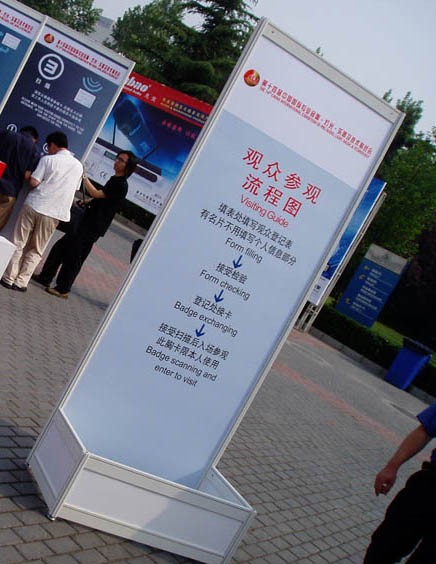 深圳赛安展览铝材生产的展览展示器材基本上涵盖了各种展览会用的铝型材料,主要有大孔八棱柱,小孔八棱柱,六棱柱,360度立柱,180度样柱,120度立柱,105度立,大孔90度立柱及小孔90度立柱,半八棱柱,四分之一棱柱,方柱,40方柱,60方柱,80方柱等立柱,配套产品铝材及配件齐全,质量好,安装方便,款式多,可选择性广,我公司生产的展墙/标准展板:是采用国际通用标准而设计制作的,每张规格为宽1.0m*高2.5m,每张和每张组合可以无限延伸,可以组合成“一”字,“W”,“L”,“Z”,…,等很多种摆放的造型,主要器材组成为:八棱柱、八棱柱锁件、联板、双面pvc展板、其特点是装卸快捷,角度变换,易装易拆,便于运输,节省存储空间。适用于画展,宣传,摊位,背景,围挡等,详情请电13480957503滕小姐,QQ43374261,