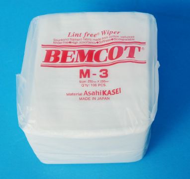 M-3无尘纸是净化室专用的擦拭用品,该产品具有纸质柔软,吸水性强,不易撕裂,含尘量少的特点。 该产品由木纤维制成的无纺布产品,产品表面呈孔状结构。多用于擦拭精密物件的表面。低尘、低离子剩余、擦拭效果佳、高储水能力。
