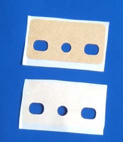 为A/I料带件量身定夺的一套好方法.如轴式的电阻料件放射式的电容料件. 1、采用国外高强度、高粘度胶带: 2、正反面经过精密模切加工: 3、使用时绝不接触胶面,保证接料可靠性。 AIS-0100 AI接料胶片 三孔 40mm * 22mm 2000片/卷 适用轴式料带(电容) AIS-0200AI接料胶片 五孔 70mm * 23mm 1000片/卷 适用轴式料带(电容)AIS-0300 AI接料胶片 二孔 28mm * 35mm 2000片/卷适用轴式料带(电容) AIS-0400 AI 接料铜扣 1000片/卷 适用列式料带(电容)为A/I料带件量身定夺的一套好方法.如轴式的电阻料件放射式的电容料件.深圳鸿宇电子专业生产SMT单面接料带(四边片):一般配合接料钳、接料铜扣使用,操作熟练的员工也可不用接料钳而直接用四边片接料带粘合料带,这种价格相对便宜,产品每盒4000片胶带,全部采用进品原材料制成。 SMT双面接料胶带 1、产品说明:由两条进口高粘胶带组成,在胶带两边压有数个定位点。2、 接料时采用产品两边的定位点进定位,无需其它辅助工具。此种接料办法是最为广泛经便捷的接料方案。3、产品每盒500PCS,全部采用进口原材料。4、适用范围: 8mm, 12mm, 16mm,24mm料带SMT接料铜扣包装:4000片/盒颜色:黄色