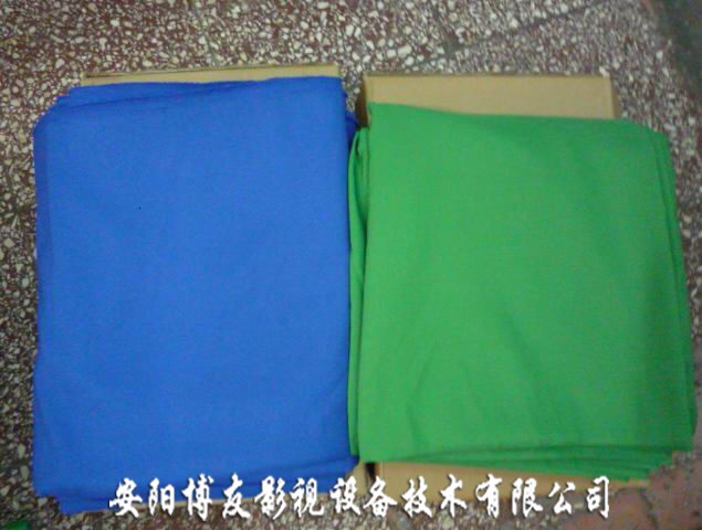 专业演播室抠像背景布,幅宽3米长度不限,中间无接缝,抠像干净无虚边.有蓝色和绿色两种,客户可以根据自己的实际需求选择.进口棉布的整平:如果您有蒸汽熨斗的话,请您用蒸汽熨斗轻轻熨烫反面就可以了,如果没有熨斗,只要过水不加洗涤剂浸泡三分钟后取出用夹子固定住自然晾干就行,水温40度以下,或是挂一阵就可以去掉了。请不要用力揉搓绒面,不要使用普通熨斗熨烫