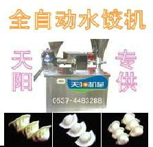 全自动饺子机(水饺机)主要部件采用食品专用不锈钢材料生产,输面及成形部件采用特种防粘结技术材料精工制造,阻力小、成型好,耐磨耐压,拆装、清洗方便, 经久耐用。全自动饺子机(水饺机)可以双控双向同步定量供料,只需将面团与馅料放入指定入口,开机自动成型。全自动饺子机(水饺机)生产饺子,馅量、面皮厚薄随时可调,饺子皮薄馅满,生产速度快,省工省时。全自动饺子机(水饺机)只需更换模具,就可以制造出不同形状、不同规格的面点食品。适用于家庭、中小餐馆、酒店、幼儿园、部队企事业单位食堂等,用途广,市场大。彻底把人们从包饺子的劳动中解放出来了。TY-80型饺子机(水饺机)配用动力:1.5KW(220V),产 量:4800个/小时,价 格:6600元。天阳机械吴奇欢迎您致电13181307932咨询。