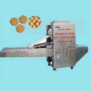 产品介绍:该桃酥机采用无级调速电机,生产速度可根据生产需要自己自由控制,自动撒芝麻、瓜子仁等原料。对辊式工作方式,脱模效率高,确保原料口味不变,自动摆盘,摆好盘后,可直接拿去烘烤,省去专门的摆盘人员。机器设计合理,维修方便。