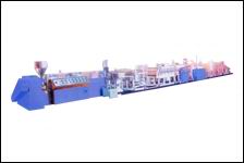 ★该机组是由主机、模具、定型台、牵引机、应力消除箱、输送架、切断机、输送台等组成。(生产PC材料时,需增加辅机系统,齿轮计量系统)