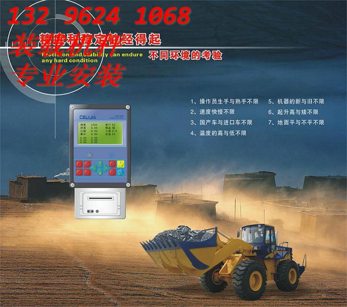 装载机电子秤简介装载机电子秤是一种装载机称重设备,与装载机的机械控制部分集成为一体,在装载机运行中实现称重,解决了装载机在装载过程中不能自动计量的问题,性能、品质胜过进口,产品畅销国内外。降低人工成本;减少员工矛盾50%,装载机电子秤降低装卸成本20%,提高装卸效率25%,装载机电子秤保证设备的使用寿命,提高企业的经济效益。 2、特点 2.1、全自动全动态称重功能装载机在运行的同时,装载机电子秤机动臂提升到一定的位置,通过动态称重软件便可精确称出每斗重量。操作方便,简单易学,不分新熟手。 2.2、测量精度高,装载机电子秤不受恶劣环境影响。采用温度传感器、装载机电子秤水平倾角传感器、角度传感器来清除因温度、路面、提升高低引起的测量误差。采用4—20mA模拟信号输出,保证其测量精度装载机电子秤,测试精度5‰,综合精度±1.5%,单斗精度±3%。 2.3、数据累加、存储功能能进行数据累加,并存储99个不同客户及材料信息;可按时间、物品、客户等分类管理、查看、打印各种数据报表。装载机电子秤2.4、报警及自动校验系统可进行故障自检,显示故障原因,装载机电子秤提示检修人员及时解决相关故障,当装载机内有粘斗现象时可自动校验。装载机电子秤 2.5、系统扩展功能系统自带打印功能,并可升级到 USB数据拷贝,装载机电子秤数据可以无线传输(CDMA GPRS GPS 3G或无线局域网);可根据客户需要进行系统升级处理。 3、应用范围产品应用广泛,适用于各种装载机。如:沃尔沃、特雷克斯、装载机电子秤广西柳工、山东临工、福田雷沃、徐工、小松、日立、宇通重工、威肯、夏工、晋工、龙工等无论新旧机。 4、工作原理装载机称重系统根据测力传感器电信号的采样,装载机电子秤把采样信号送到微处理器,并结合外界位置检测器及机械结构参数计算出最终最准确的重量装载机电子秤。测力佳HDC2005第4代装载机电子称突破性的采用DSP/ARM技术和温度/水平倾角/角度传感器来保证产品的精度和稳定性,能胜任各种恶劣的工作环境。装载机电子秤5、产品参数供电电压:DC24V 环境温度:-20℃ ~ +80℃ 工作电流<300mA 模拟量输入:4路开关量输入:4路控制输出:3路模拟信号输出:装载机电子秤4—20mA 传输接口:RS485接口显示控制箱防护等级:IP67 传感器防护等级:IP68 6、产品申明本产品属于国内首家公司自主研发,产品技术受国家专利保护。