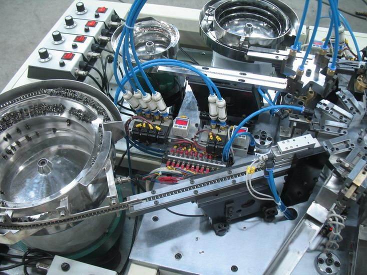 1. 多工位自动装脚.装弹片.装按扭.装盖子功能