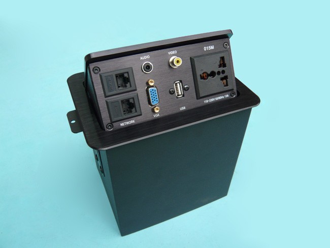 桌面隐藏式插座系列为用户提供了一个时尚、美观的桌面信号连接解决方案;它采用简单易用的接入方式,我们在连接视频、音频、计算机视频、网络、电话、电源等接口时,轻按连接盒的顶部,连接盒即时释放机械锁定器,接口盒面被气撑式结构平滑打开,完全展现出连接接口面,使用完毕后,只需轻轻按下接口盒盖,机械锁定器立即锁定连接盒;锁定后的连接盒与桌面保持齐平,所有接口被巧妙地隐藏起来,盒面美观整洁并与桌面浑然一体。