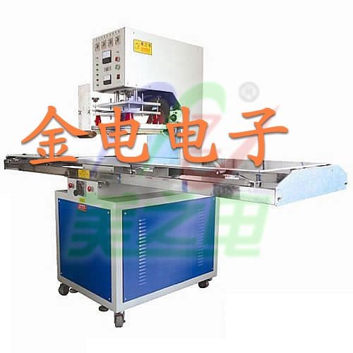 ③半自动单头转盘式:工作台面板分转盘前后两边,操作方式是由操作者180度转动转盘左右转盘交替使用。热合焊接过程全部由时间控制,设备设有四个时间制(下降延时---高周熔接----冷却定型-----上升时间)。输出高周波电流强,性能稳定可靠,机头气压压力可以根据所需要热合焊接的塑胶、塑料材料封口包装要求随意调节,主要适用生产吸塑泡壳封口、塑料、塑胶产品的的焊接封口。