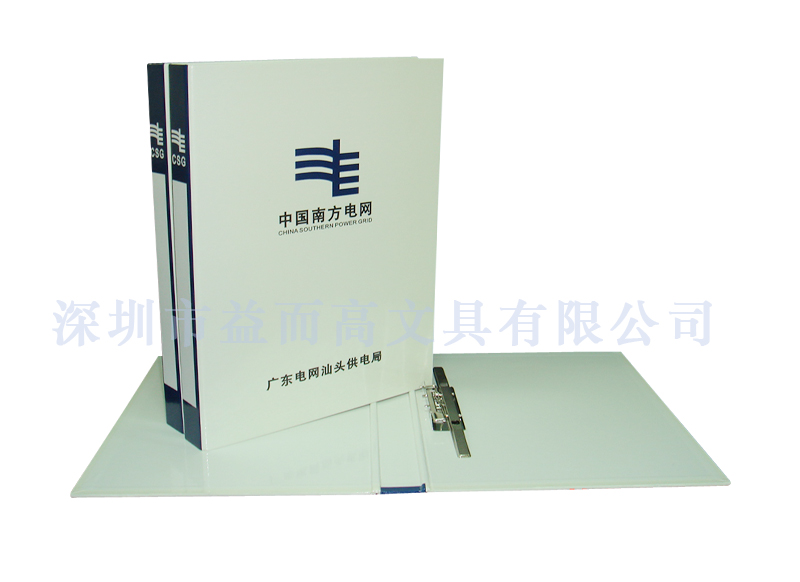 南方电网文件夹封面采用128克铜板纸印刷过光膜,内里纸为105克空白钢板纸过光膜,钉8分强力夹,用于企业内部办公文件的存档及管理.供货商:深圳市益而高文具有限公司联系邵小姐13715297763,QQ:407293039邮箱:shaoyuqing88@yahoo.com.cn http://www.szyiergao.com.cn