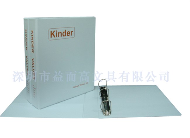 仿皮文件夹封面及内衬分别为白色PVC胶料,包1800克灰板,钉3孔D型夹,文件夹正面,背脊及背面丝印1色,提升企业对外形象,突出企业的不凡实力. 翻开文件夹左面压一个名片袋,可放置业务人员名片, 功能:用于企业宣传,同时用于企业内部办公文件的存档及管理.供货商:深圳市益而高文具有限公司联系邵小姐13715297763,QQ:407293039邮箱:shaoyuqing88@yahoo.com.cn http://www.szyiergao.com.cn