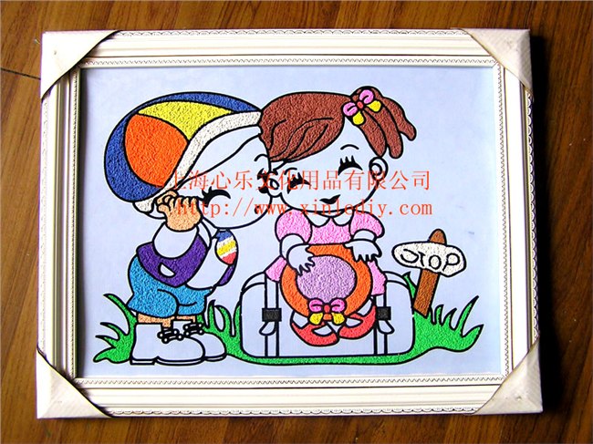 彩泥画又称花泥画、彩塑画,是一种新型彩泥浮雕画。产品包括各种颜色的彩泥,印有图案的画板和镊子等工具。制作者用镊子等将绒状彩泥颜料均匀堆塑在画板上,自然干燥后就成为一幅立体浮雕画。通过小孩子自己动手制作,了解和掌握初级美术浮雕、立体造型知识,将美术教育和乐趣相结合,寓教于乐。花泥画,植物纤维画,是一种富有立体感的新型浮雕状装饰画。该工艺所用的颜料是一种以植物纤维为主要原材料的环保型的软性彩色泥巴,又叫花泥、花花泥或彩色泥,具有强力的粘附性,可轻松地在纸板、木板、瓷、石、布、玻璃等各种硬质材料上作画,画面凸起,层次分明,自然晾干后彩色泥巴颜料坚硬如石,色彩艳丽,新潮时尚,不褪色,不脱落,可长期保存完好。把制好的花泥画配上画框,即成为精美的可挂、可观赏的高档装饰品。