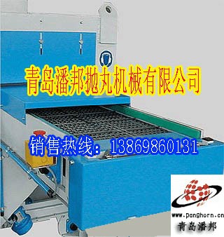 青岛潘邦公司生产的高性能网带式抛丸机可典型地用于处理薄壁和脆性壳体的加工。这类抛丸机从各个角度配备了三到五个不同尺寸的抛丸轮。它们可应用于传输生产线上,将工件完全自动地从几个抛射角度抛丸、去除毛刺、校准检测和沿路线进入下一个加工工序(如去毛刺、装配和包装)中。 本机为高性能抛丸强化清理机,配有四个抛丸器,适合于热固性浇铸工件的连续去毛刺加工。传送带上、下各两个抛丸轮确保了加工的精确性和一致性。由于抛丸轮位于去毛刺机的外部,因此该抛丸机还具有易于维护、高效清理和去毛刺丸料易于重新调整的优点。